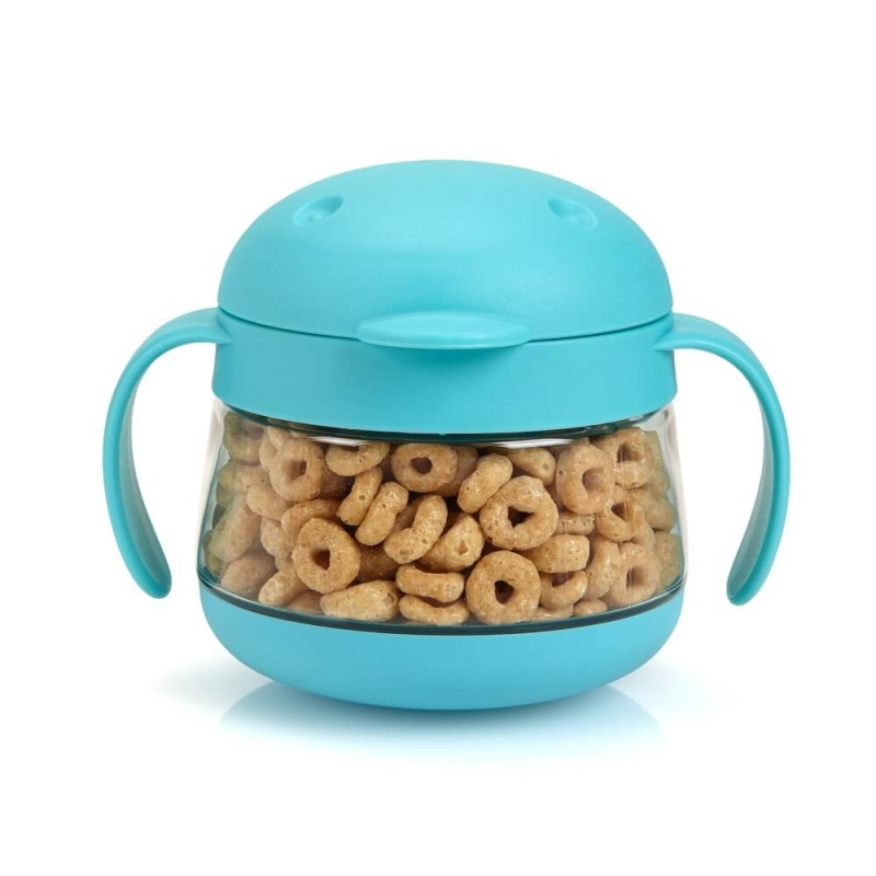 O cana practica, pentru gustari, pe care o puteti folosi pentru a depozita fructe, cereale sau alte mici snack-uri dedicate copiilor. Cana este perfecta pentru a fi folosita in momentele in care cel mic are nevoie de o gustare.