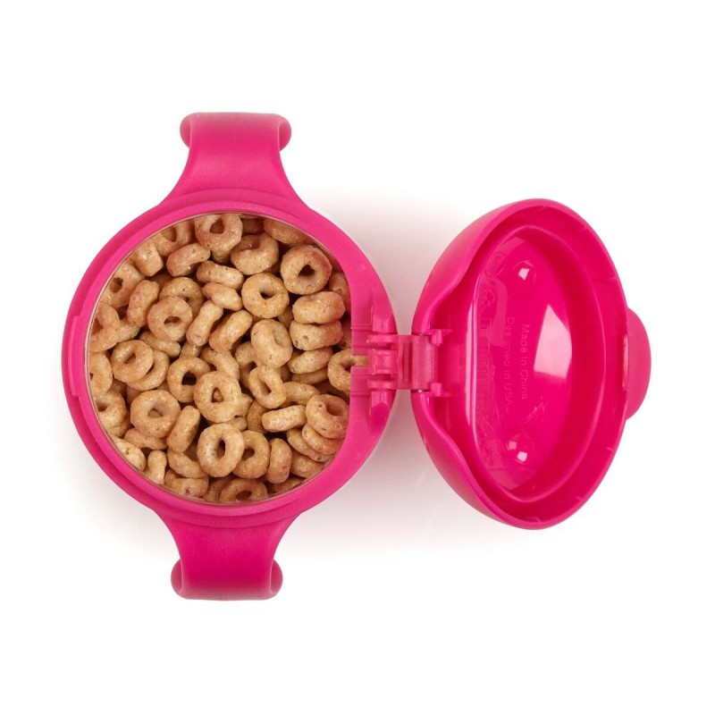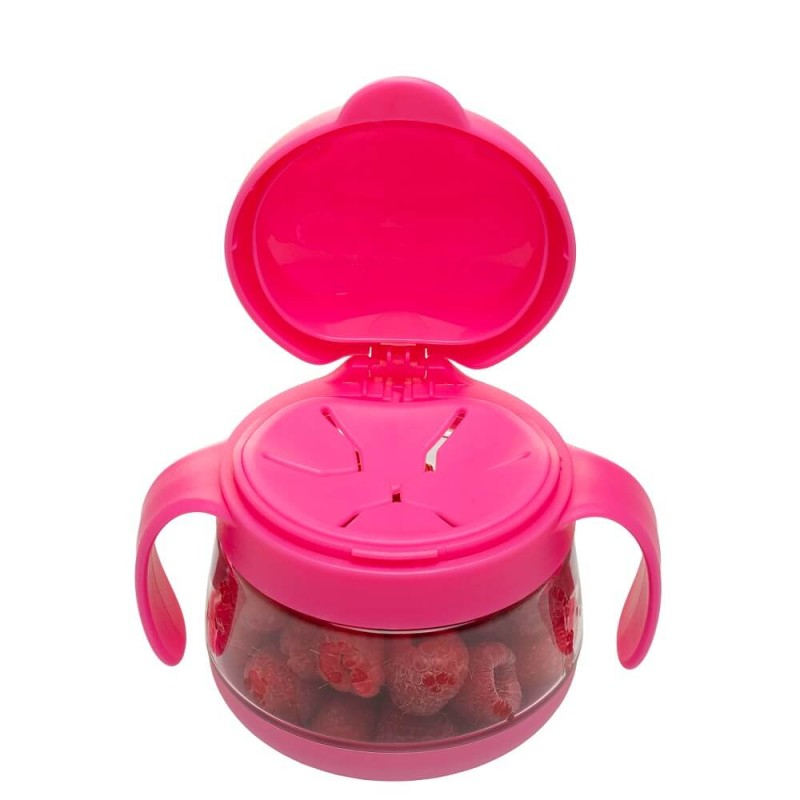 O cana practica, fabricata din tritan, de culoare roz, dedicata gustarilor cum sunt fructele, cerealele sau alte mici snack-uri pentru copii.