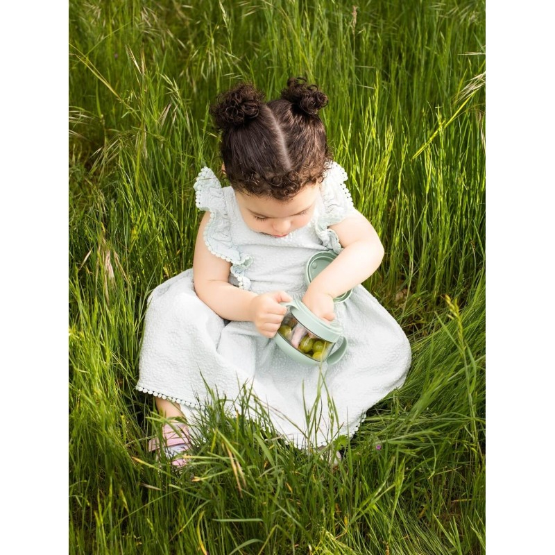 O cana practica, de culoarea verde mint, potrivia pentru gustari. In interiorul ei se pot depozita fructe, cereale sau alte mici snack-uri dedicate copiilor.