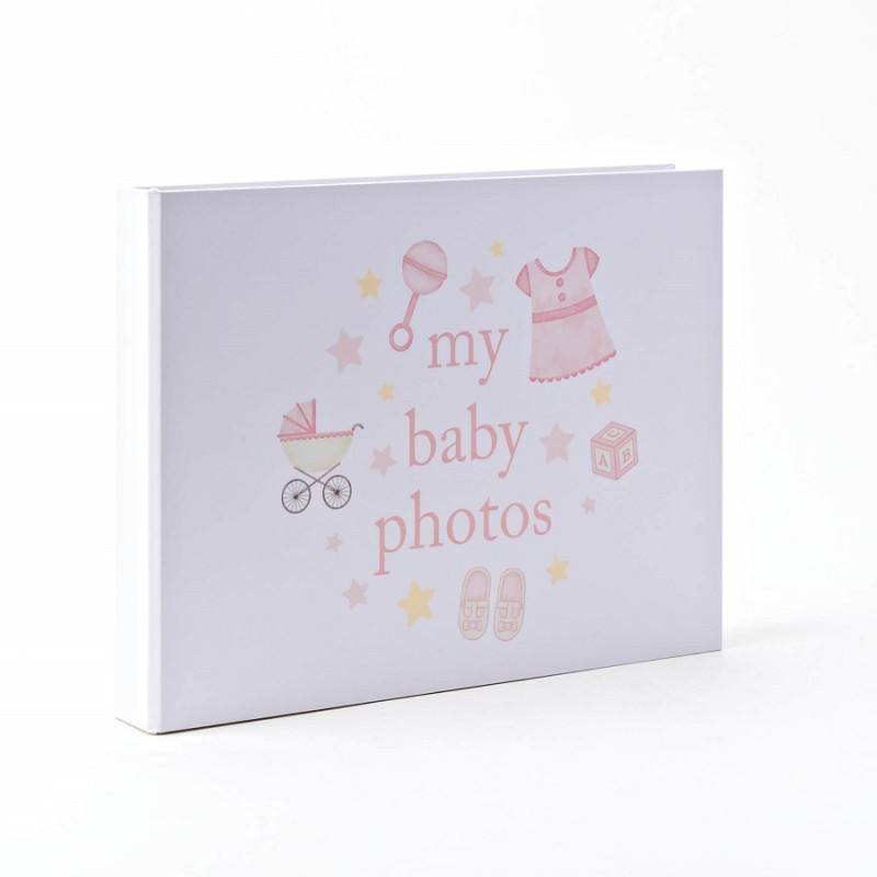 Albumul, dedicat fetitelor, este vesel decorat cu mesajul "my baby photos" si poate stoca 28 fotografii cu dimensiunea de 18 x 13 cm (format landscape).