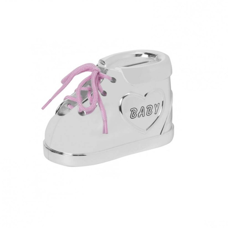 Pusculita, pe care o puteti face cadou la botezul, aniversarea sau nasterea bebelusului, este suflata cu argint si are dimensiunile de aproximativ 11 x 6 x 7 centimetri.