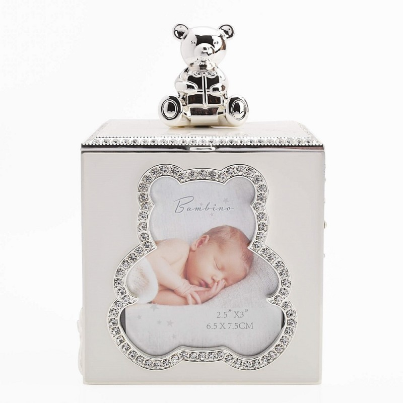 Latura cubului este de 9 centimetri. Spatiul din interior, prevazut cu catifea neagra, este de 6 x 7.5 x 7.5 centimetri. Fotografiile trebuie sa aiba dimensiunile de 5.5 x 5.5 centimetri (cele doua fotografii patrate si o a treia rotunda), respectiv 6.5 x 7.5 centimetri (cea in forma de ursulet).