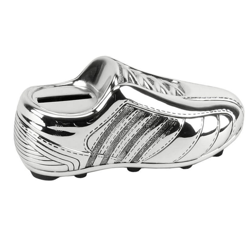 Micutul tau fotbalist poate avea de-a cum o pusculita haioasa, in care sa-i fie pastrare economiile. Bambino by Juliana vine in intampinarea voastra cu aceasta pusculita simpatica, in forma unei ghetute de fotbal. Pusculita argintata poate fi un cadou excelent pentru botezul sau nasterea bebelusului. Pusculita are un capac, in partea sa inferioara, prin intermediul caruia se poate goli.