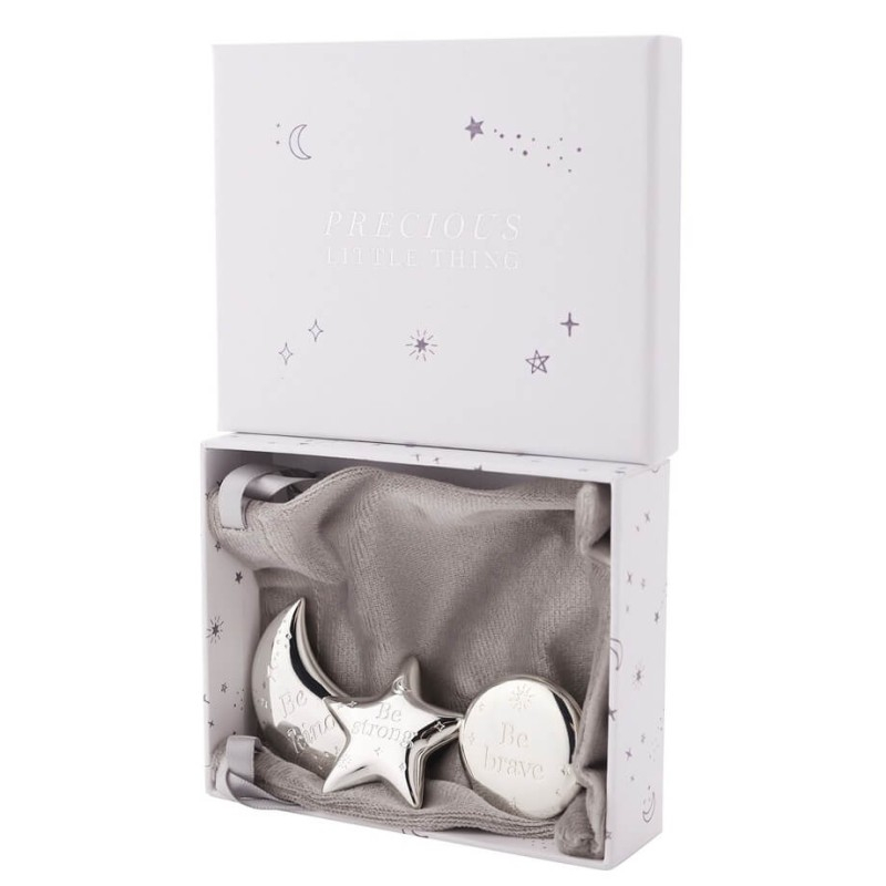 Un set elegant de marturii argintate, marca Bambino by Juliana, pe care il puteti oferi la nasterea sau botezul bebelusului.