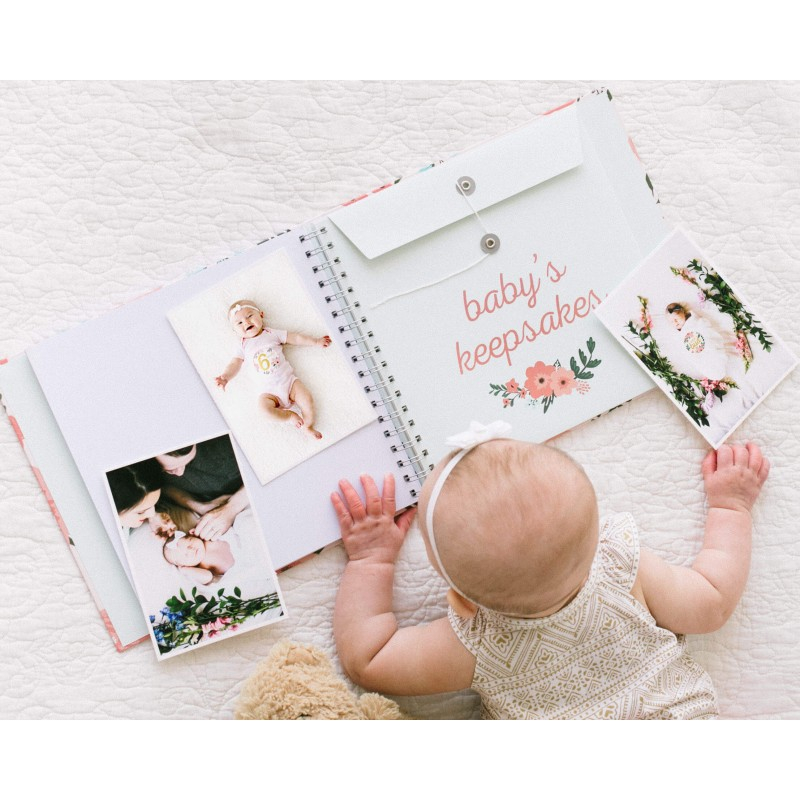 Acest set, pe care il poti oferi viitorilor parinti de fetita sau celor care tocmai ce au adus pe lume o bebelusa, este format dintr-un set de stickere cu varsta bebelusului care se pot lipi pe hainutele celor mici pentru a-i fotografia la implinirea diferitelor varste, un ink pad cu cerneala pentru realizarea amprentelor si un caiet in care se pot nota diferite amintiri.