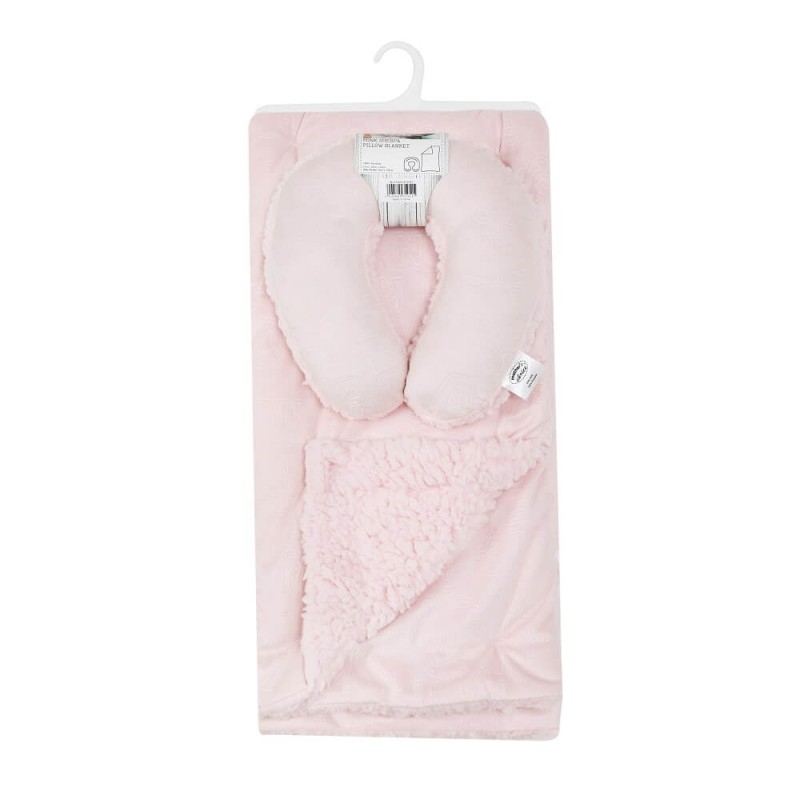 Set cadou bebelusi cu pernuta calatorie si paturica pufoasa roz - Mother's Choice
