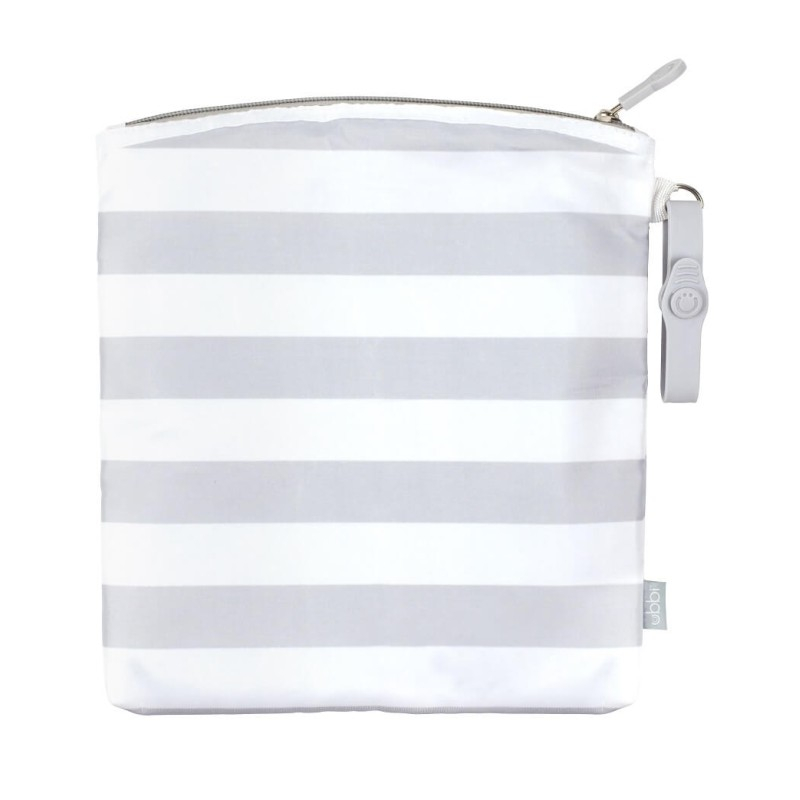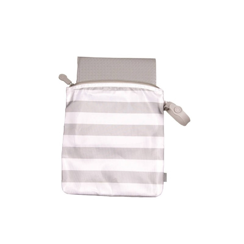 Salteluta se livreaza impreuna cu o gentuta subtire pentru transport. Gentuta este prevazuta cu un inel din silicon, putand fi agatata cu usurinta de orice carucior.