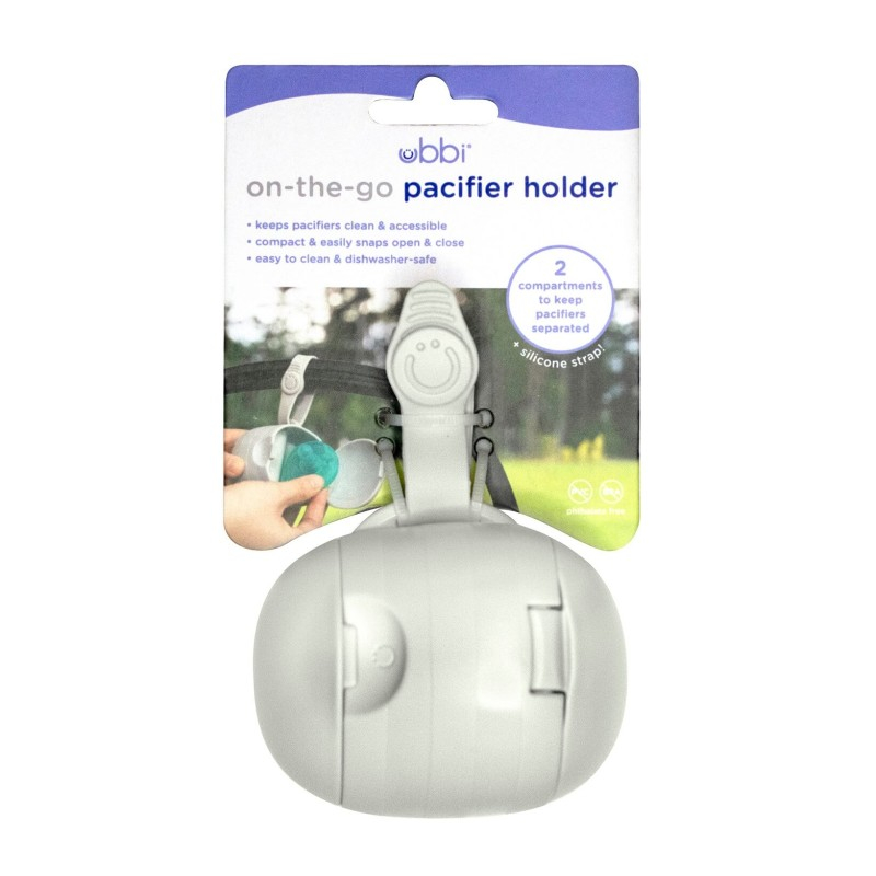 Suportul pentru suzeta Ubbi On The Go gri este ideal pentru pastrarea in siguranta, ferit de germeni si murdarie, a suzetelor.