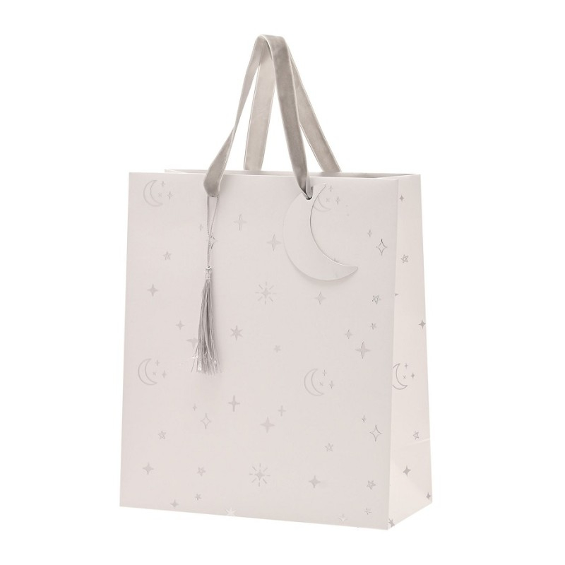O punga de cadou bebe eleganta si practica, potrivita atat pentru baietei, cat si pentru fetite, perfecta pentru orice ocazie speciala: botez, aniversare sau baby shower.