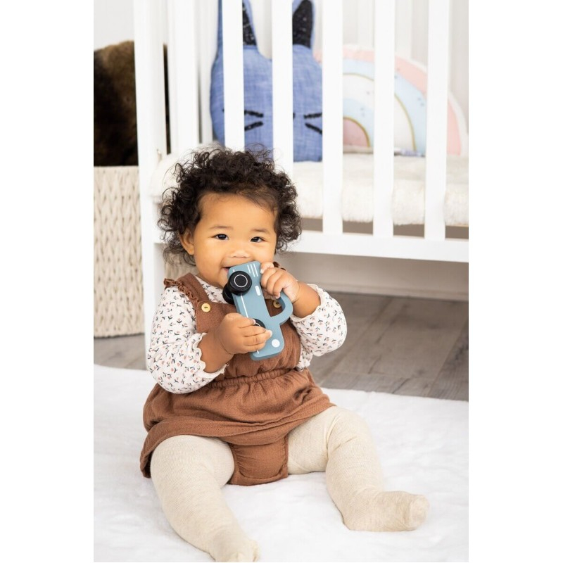 O jucarie dragalasa pentru bebelusi, fabricata din lemn, care ajuta la stimularea curiozitatii, a imaginatiei si a coordonarii mana-ochi a celui mic.