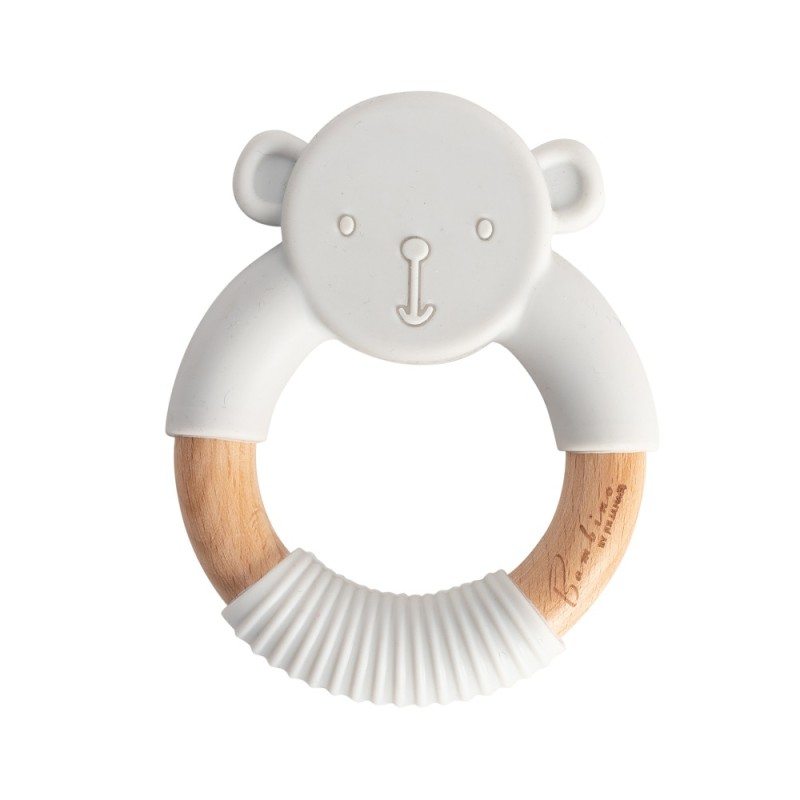Aceasta jucarie Bambino by Juliana este fabricata din lemn si silicon, ambele 100% sigure pentru beeblusi. Jucaria poate fi extrem de utila in perioada aparitiei dintisorilor.
