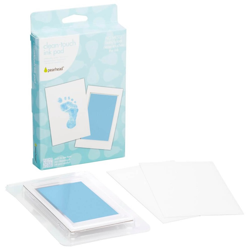 Un set de amprentare pentru nou nascuti, format dintr-un ink pad cu cerneala bleu si doua cartonase.