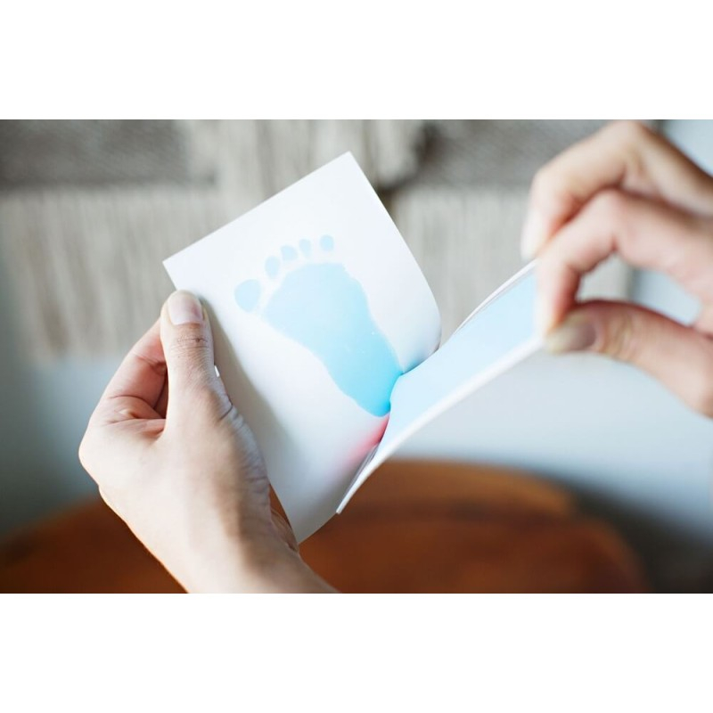 Tot ce trebuie sa faceti pentru realizarea amprentei este sa pozitionati ink pad-ul deasupra cartonasului (pe principiul indigoului) si sa apasati apoi piciorusul sau manuta bebelusului pe cealalta parte a ink pad-ului! Lasati apoi sa se usuce.