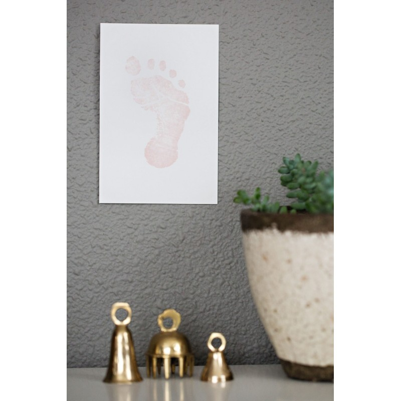Tot ce trebuie sa faceti pentru a realiza amprentei manutei sau piciorusului este sa pozitionati ink pad-ul deasupra cartonasului (pe principiul indigoului) si sa apasati apoi mana sau piciorul bebelusului pe cealalta parte a ink pad-ului! Lasati apoi sa se usuce.