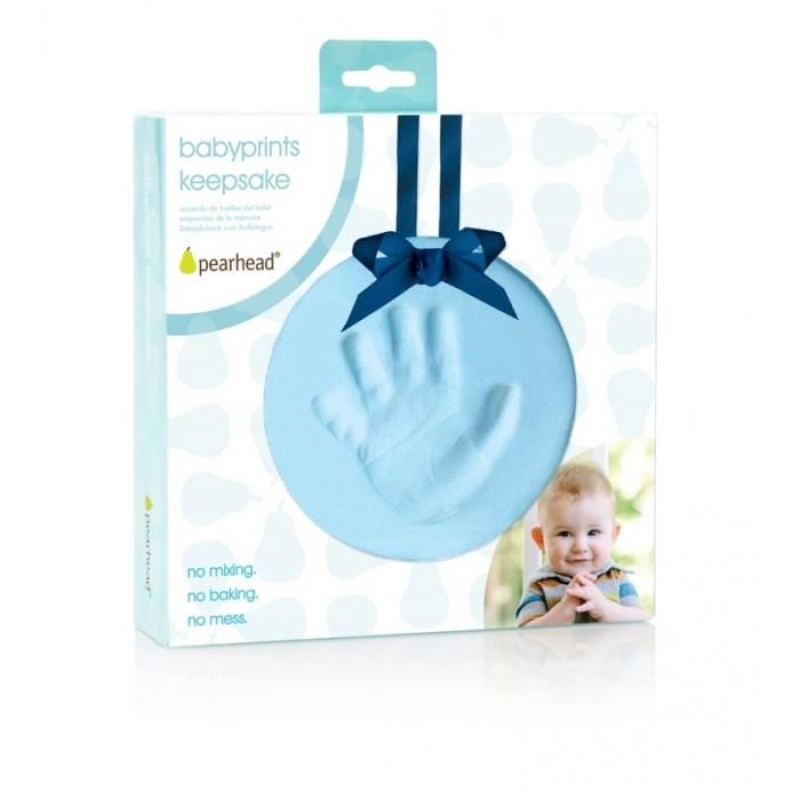 Un kit pentru realizarea mulajului manutei sau piciorusului format dintr-o punguta cu material de amprentare bleu, un roller, un cerc pentru decupaj, 1 pai si funda bleu.
