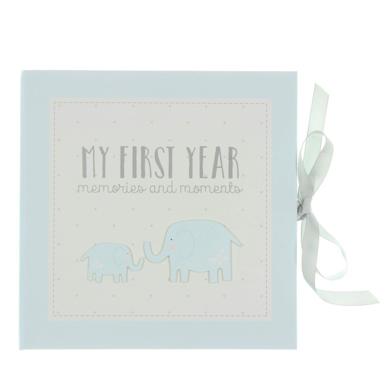 Caietul bebelusului este prevazut cu un design simpatic, cu elefantei bleu, iar pe coperta are inscriptionat "my first year, memories and moments" (primul meu anisor, amintiri si momente).