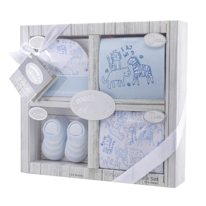 Un set de hainute pentru bebelusi, ideal pentru a fi oferit cadou unui bebelus cu ocazia nasterii. Setul este compus dintr-un body cu maneca scurta, un pantalonas, o pereche de sosetute si o caciulita asortata.